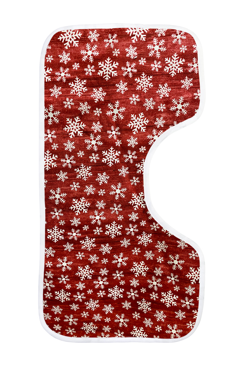 - Rectangular over the shoulder Burp Cloth with circular cut out around neck to help make burp time easier and mess-free